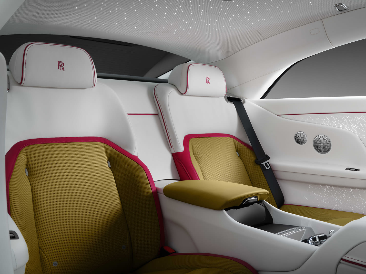 Its form is collectively inspired by modern yacht designs, haute couture, modernist sculpture and contemporary art, featuring a fastback sloping roofline that recalls the dramatic silhouette of some of the most evocative automobiles and watercrafts in history. The two-door, four-seater will be the most aerodynamic Rolls-Royce ever produced, with a drag coefficient of just 0.25.