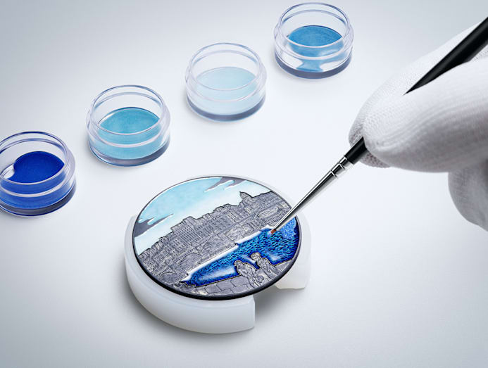 That it is a grande sonnerie – with petite sonnerie, minute repeater, and tourbillon – is already a formidable achievement, but the Ref 1905 seems less interested in technical one-upmanship than in remembrance. Here, all of Breguet’s house codes are on display: abundant guilloche, vibrant enamel, blued steel hands, Breguet numerals, anniversary motifs including the Quai de l’Horloge, and a case in Breguet gold. The hand-engraved, enamelled cover presents a view of the Seine, its waters rendered in Bleu de France – a colour introduced under Louis XIV and still echoed across Place Vendome.