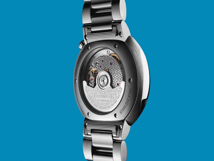 The watch has a sapphire caseback that shows off the Manufacture Hermes H1912 movement. It has 50 hours of power reserve and water resistance of 100m.