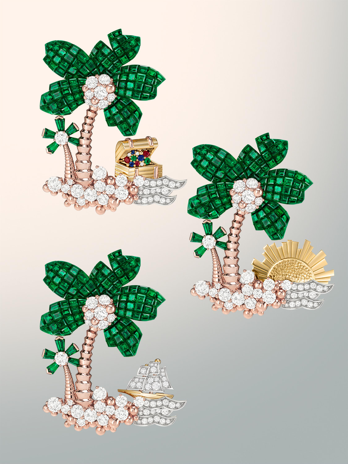 Van Cleef & Arpels takes us on a voyage to Treasure Island, a high jewellery collection inspired by Robert Louis Stevenson’s iconic tale. Divided into three enchanting chapters of Adventure at Sea, Exploring the Island, and The Treasure Hunt, the whimsical and colourful line of over 125 creations pays homage to the romance of maritime exploration.
