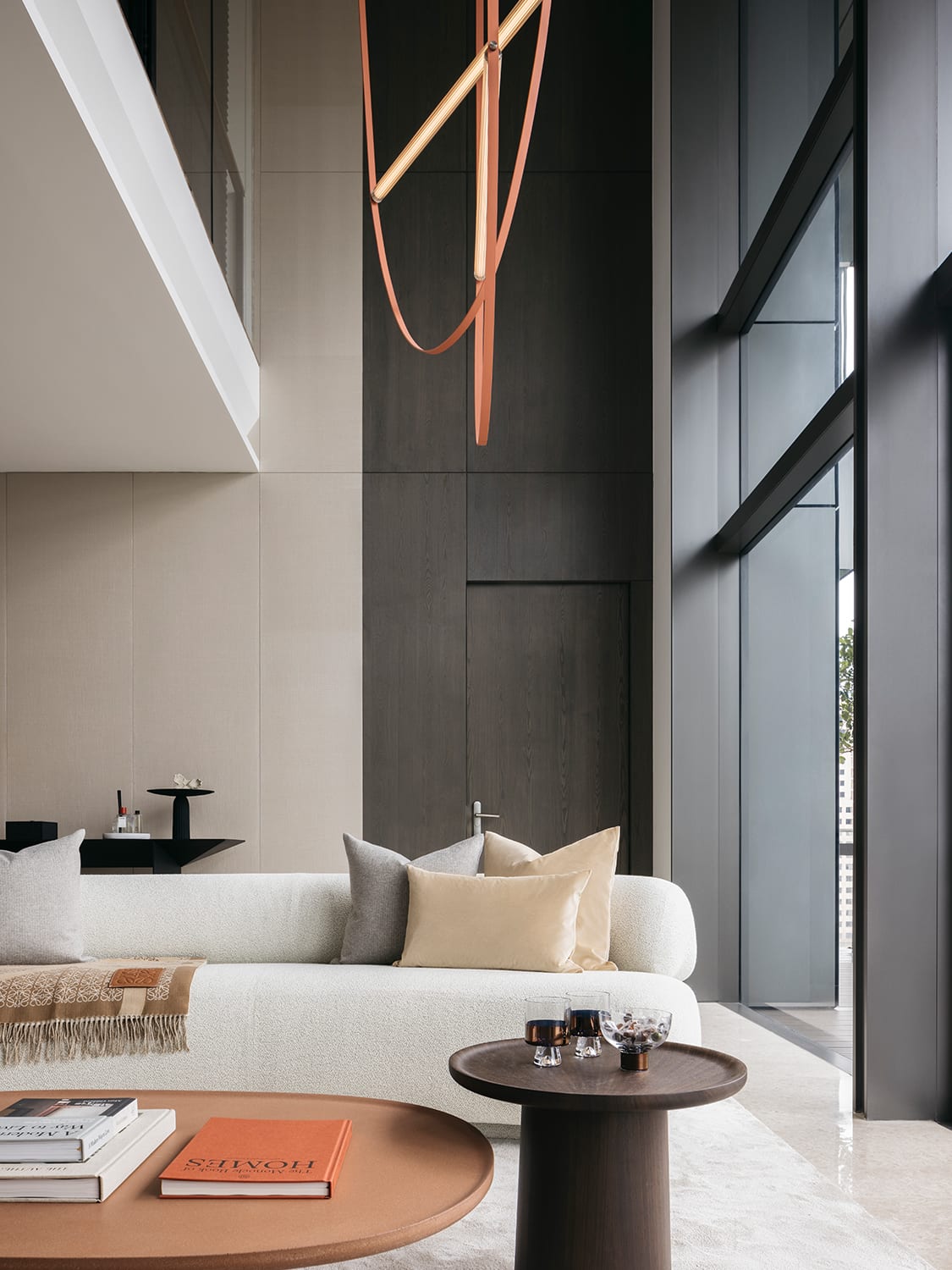 Edmund Ng was engaged to design this two-storey, 4,700-sq-ft penthouse in-situ show unit in Corals at Keppel Bay, a development designed by Studio Daniel Libeskind. “The client’s vision was to create a luxurious and cosy home, perfectly suited for busy business owners or professionals who want a move in-ready residence. These discerning buyers have a global aesthetic sense and frequently host guests, Ng explained.