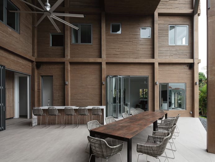 In this Singapore home, a family bonds over meals in a 3 storey-high patio with a view