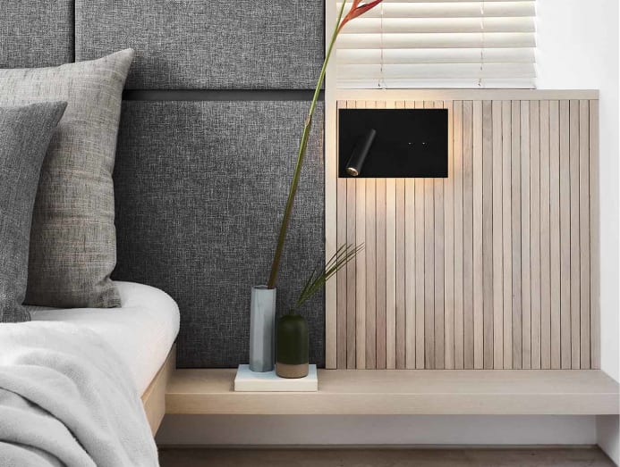 The lighter-toned oak timber veneers employed on this level evokes a more contemplative atmosphere. Simple timber sliding screens dividing each section, as well as the rhythmic lines of the timber bed frames, echo the latticed language found in the first storey.