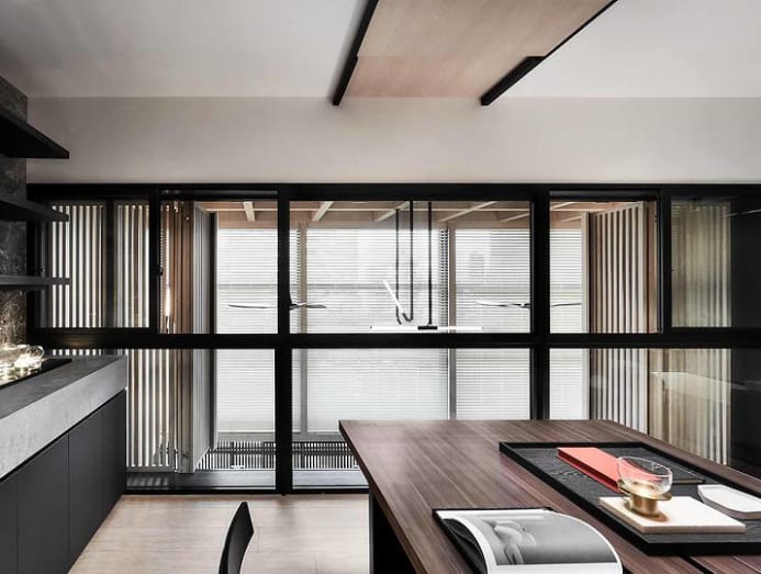During his first visit, Cheok recalled the unbearable heat and glare of the early evening sun and so placed importance on creating a thermally comfortable environment. He layered a dual screen across the expansive, double-height windows, with vertical sliding panels beneath and horizontal louvres above.