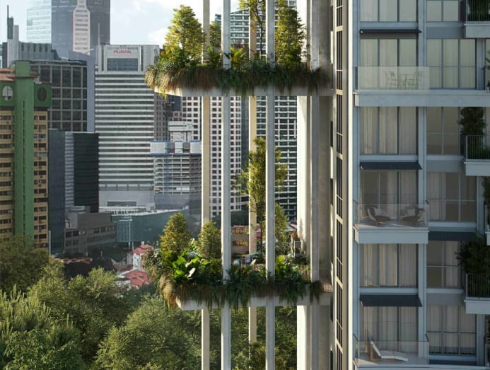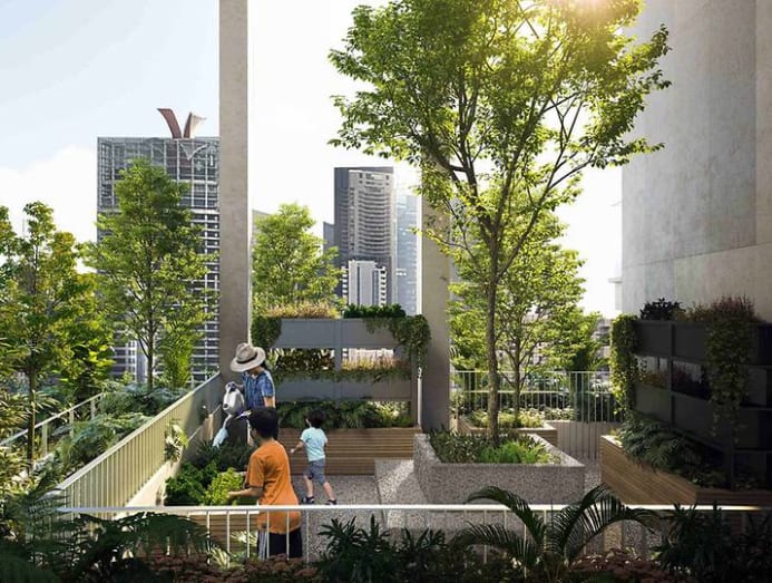 A rendering of a sky allotment garden in CapitaLand's One Pearl Bank development. (Image: CapitaLand)
