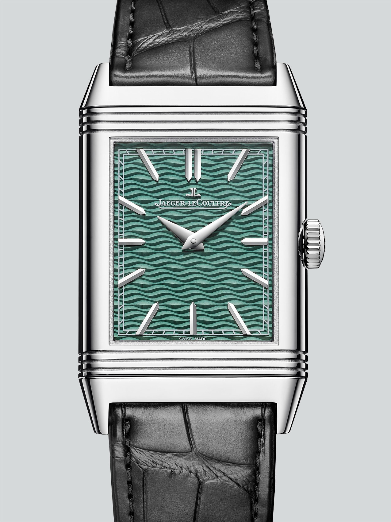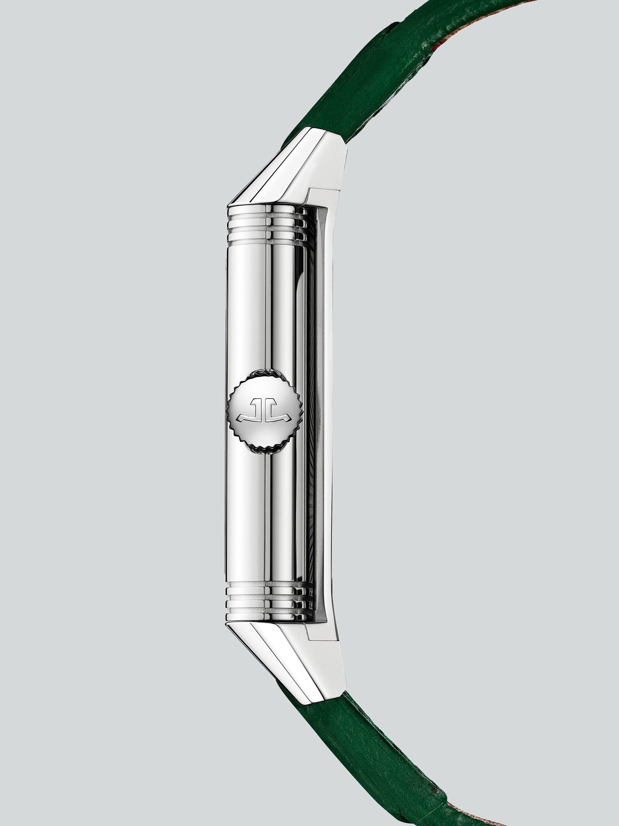 Its trendy green dial and matching strap are supposedly inspired by the forests near the brand’s manufacture in Le Sentier, Switzerland, but perhaps the more exciting point is that a green Reverso is rare – the only other one was the Grande Reverso Ultra Thin 1931 London Edition in British racing green from 2015, and that was exclusive to the brand’s London flagship.