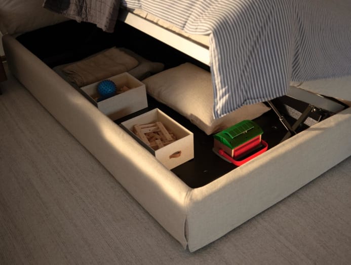 The Delta Coast Bed features a storage solution with an optional hidden compartment beneath the base, accessible via a sideways opening. The bedhead’s reversible design allows the storage opening to be adjusted from left to right, offering flexibility to suit different room layouts.