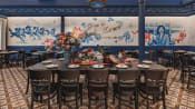 While Ker’s priority was to source in Melaka, her search for the right design features led her further afield. For instance, the spiral wrought iron staircase was found in India, while embossed tiles were imported from Vietnam. Where necessary, she also modified traditional details to make it more practical: “We custom made our Tok Panjang, the customary long table for Peranakan feasts, with fewer legs so it looks neater and there are less chances of guests knocking their legs on the table legs.”