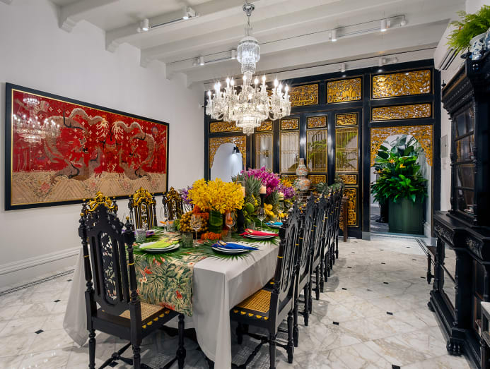 Ker wanted to recreate the house to be as close to its heyday as possible, and as guests enter through the pintu pagar (swing doors), one is transported into another era. Beginning with the tua tia (reception hall), where one can enjoy a view of the gilded ornate screen, Ker spent months trawling antique shops to source.