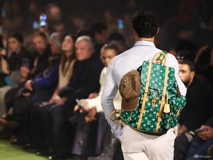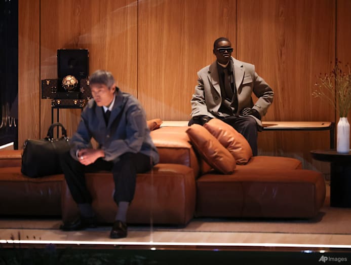 A model wears a creation as part of the Louis Vuitton Fall/Winter 2026-2027 Men's collection presented in Paris, Tuesday, Jan. 20, 2026. (AP Photo/Thomas Padilla)