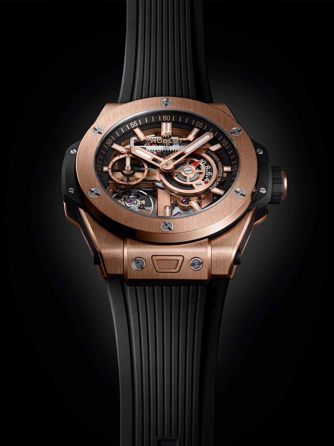 A ground-breaking innovation introduced in 2012, Magic Gold is the world’s first scratch-proof 18k gold alloy, which was exclusively developed in partnership with Ecole Polytechnique Federale de Lausanne, a public research university in Lausanne, Switzerland. Boasting a remarkable hardness of nearly 1,000 Vickers – far surpassing standard 18k gold (400 Vickers) and stainless steel (600 Vickers) – the revolutionary material is the hardest gold in the world. Produced entirely in-house at Hublot's high-tech foundry, it’s created by fusing boron carbide with 24k gold, resulting in a durable yet luxurious alloy. Magic Gold also boasts a distinctive shade of gold, making it instantly recognisable and a true testament to Hublot's pioneering spirit in watchmaking.