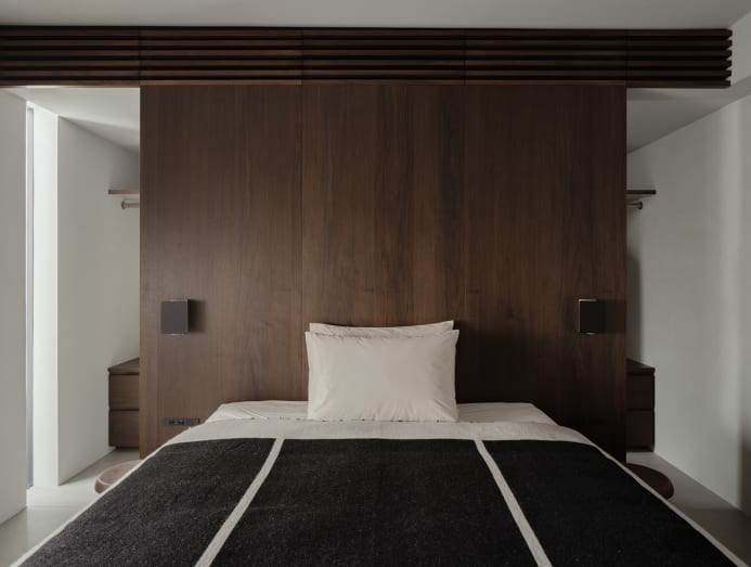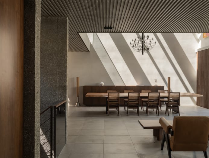 This rooftop is one of the homeowner’s favourite spots as it offers the family “a delightful escape surrounded by greenery in the heart of the city.” There is also space for barbecues here. On the rest of the home, the homeowner observed, “The greenery, visible from the windows, ensures the space never feels cold. During the day, soft, indirect light filters through skylights, complemented by the inviting warmth of wooden louvres. This makes the home a serene retreat I truly enjoy.”