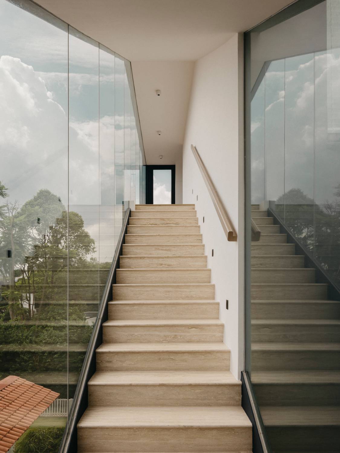 Traversing the staircase from the inside becomes a lively encounter with the exterior landscaping. A sense of place is cemented with the neighbourhood as well. It was the couple that asked Chan to place the staircase at the front of the 6,700-sq-ft house. “We saw a similar house in Mexico and liked how it was. When we return home, we can go straight to our bedrooms without passing through the common areas,” said Wang, who is also an avid globetrotter.