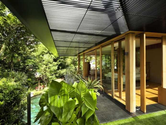 The homeowners wanted a peaceful space in this good class bungalow where they can relax and tend to their plants after retirement.