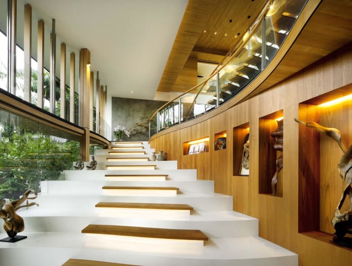 “Sitting here in the living room, I can keep an eye on the kids around the water,” said Mrs Teo. “We have a good-sized garden. I play badminton and lawn tennis with my granddaughters here too,” she added.The couple’s daughter also held her wedding ceremony in this house and walked down the golden teak stairs on the big day. There couldn’t have been a more beautiful or meaningful venue.