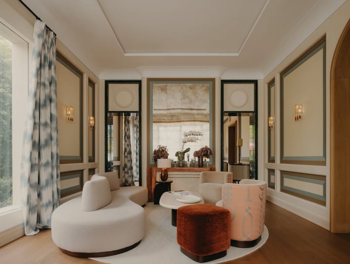 While neoclassical Italian villas provided the precedent, the house’s expressions are contemporary. “We incorporated materials like natural stone, timber and [red travertine tiles inspired by] terracotta that age gracefully and resonate with the Italian countryside inspiration. Architectural features such as arches and pergolas not only provide structural rhythm, but also pay homage to classical design principles,” explained Molina.