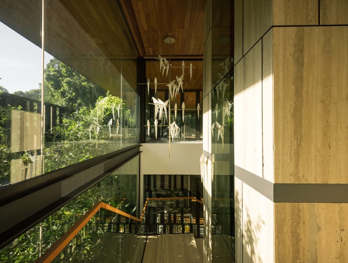It also took ample foresight to see beyond the inherent faults of the plot. Its length traced the busy road, exposing the house to both vehicular and pedestrian traffic. “But from the moment we arrived, we saw something different. The ‘forever view’ of this UNESCO World Heritage Site-listed forest presented a once-in-a-lifetime opportunity, far outweighing any difficulties. The site reminded me of highly sought-after homes facing London’s Hyde Park or New York’s Central Park,” recalled Robin Tan, the founder of Wallflower Architects.