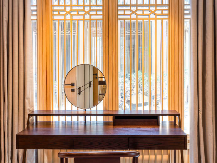 “As harmonious as the architecture is with the landscape in the various courtyards, the colour scheme across all spaces maintains resonance with the landscape’s colours. Pale jade-green is used predominantly in most of the public spaces and drives the main styling direction in the corresponding areas,” Tan mentioned.