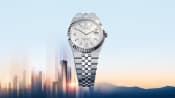 To celebrate its 30th year, Roger Dubuis returns to its roots with the Excalibur Bi-retrograde Calendar – a contemporary tribute to the maison’s very first watch launched in 1996. Sized at 40mm, its pink gold case and shimmering white mother-of-pearl dial evoke the elegance Roger Dubuis pioneered in the early 2000s, as it was among the first brands to champion such precious materials in men's watches. Its refined aesthetics are complemented by a brown 3D calfskin leather strap with an interchangeable pink gold triple-folding clasp.
