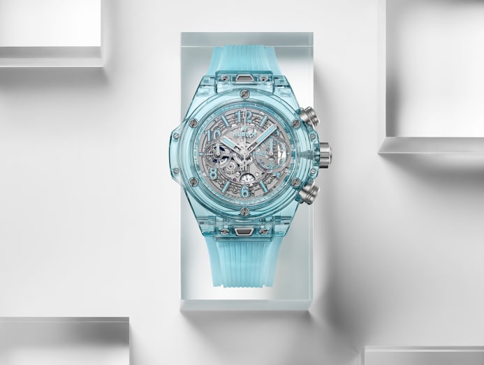 To mark the 20th anniversary of its iconic Big Bang, Hublot dives into new territory with the luminous Big Bang Unico Water Blue Sapphire. This 50-piece limited edition showcases the brand’s mastery of materials with its latest hue, Water Blue. Evoking the crystalline tones of tropical seas, this near-translucent colour washes over the 44mm sapphire case, bezel, and matching rubber strap, delivering a timepiece that looks like it was carved from light.
