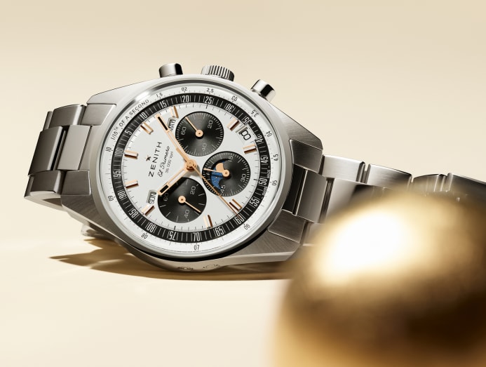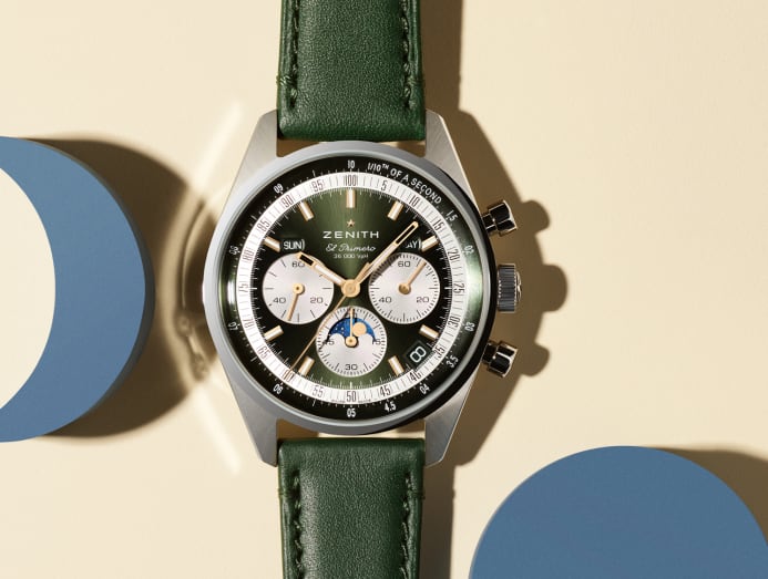 Collectors will know that Zenith’s triple calendar chronograph has reigned for over 50 years as one of the El Primero’s most emblematic variations. With its bezel-less design and domed sapphire crystal, the watch maintains the exact proportions of the A386 from 1969, while accommodating the high-frequency chronograph with a full calendar, and moonphase at 6 o'clock. Available in a sporty silvery-white “panda” dial, opulent slate-grey, and a boutique-exclusive olive green, each 38mm version exudes sophistication with rose gold accents and meticulous detailing. A transparent caseback reveals the intricate El Primero 3610 calibre with a 60-hour power reserve. The new Chronomaster Original Triple Calendar is presented on a steel bracelet or calfskin strap that matches the dial colour.