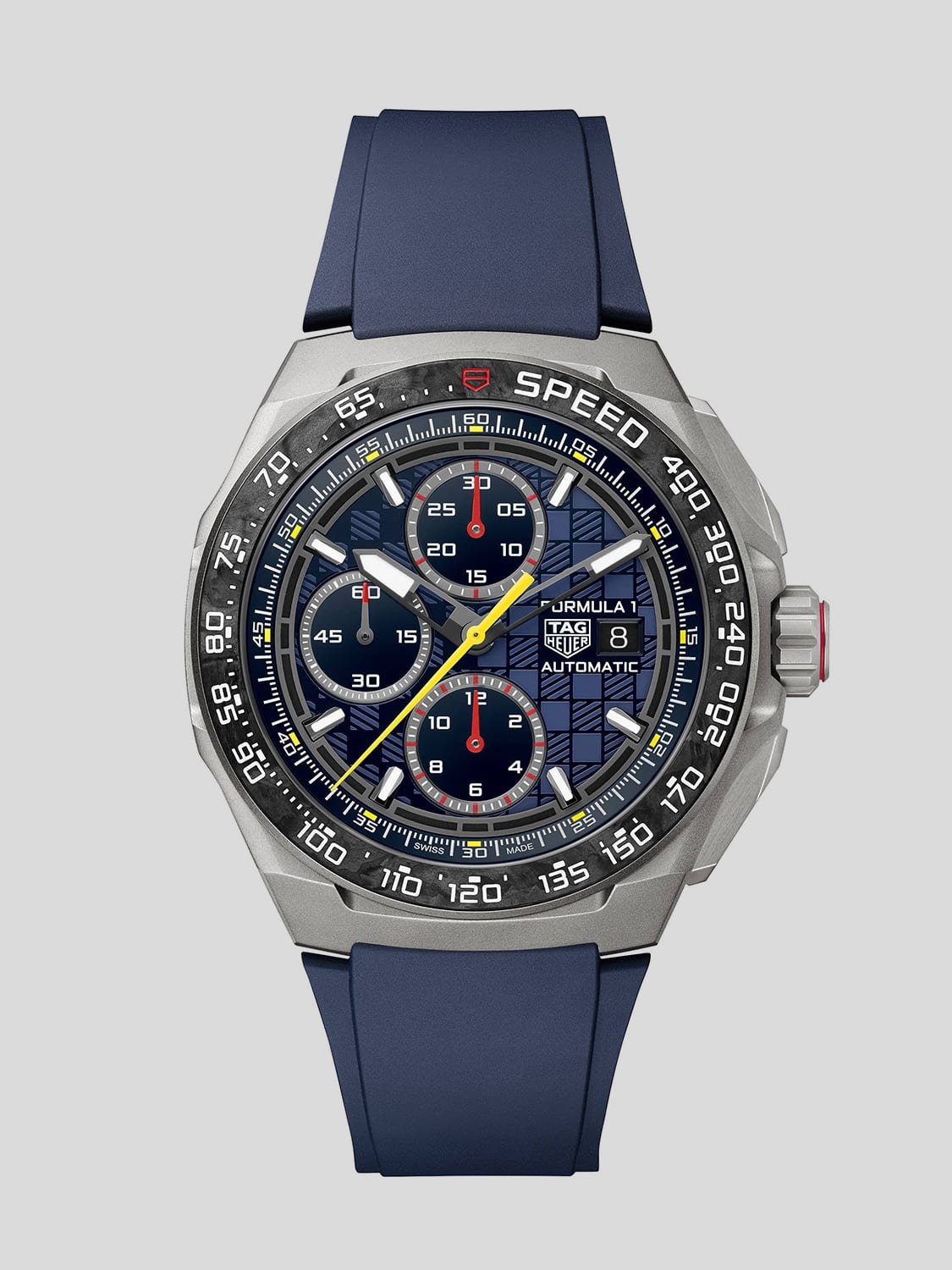 Tag Heuer’s new lineup celebrates its racing heritage and cutting-edge horology. First, the Tag Heuer Formula 1 Chronograph collection is enriched with five new releases, including the Tag Heuer Formula 1 Chronograph x Oracle Red Bull Racing, a tribute to the thrill of motorsport. These 44mm race-inspired chronographs feature cutting-edge materials, enhanced ergonomics, and bold design details inspired by the high-octane world of Formula 1. From sleek titanium cases to vibrant colour accents, each model reflects TAG Heuer’s deep-rooted legacy in racing.