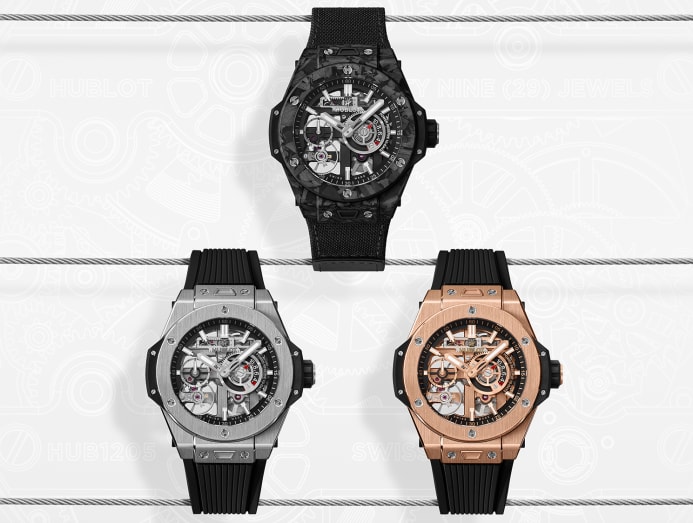 The Swiss manufacture launched three releases that push the limits of materials, mechanics, and modern watchmaking. The Big Bang MECA-10 makes a triumphant return in a more wearable 42mm case. Offered in King Gold, Titanium, and Frosted Carbon, it features a skeletonised manual-winding movement with an incredible 10-day power reserve – a feat made possible by a rack-driven indicator that tracks energy levels like a digital countdown. Inspired by Meccano-style construction systems, the movement is layered like an architectural blueprint, offering a dynamic, ever-changing display of micromechanics in motion.