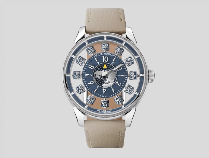Meanwhile, the 42.5mm Tambour Taiko Spin Time Air Antipode combines the unique jumping hours mechanism with a world-first travel time complication. Its ground-breaking complication indicates the time across the world’s 24 time zones simultaneously with a day-night indication, presenting them in a legible, intuitive manner. Next, the 42.5mm Tambour Taiko Spin Time Air Flying Tourbillon combines the suspended cube display with a central flying tourbillon encased in Louis Vuitton’s signature monogram flower cage.