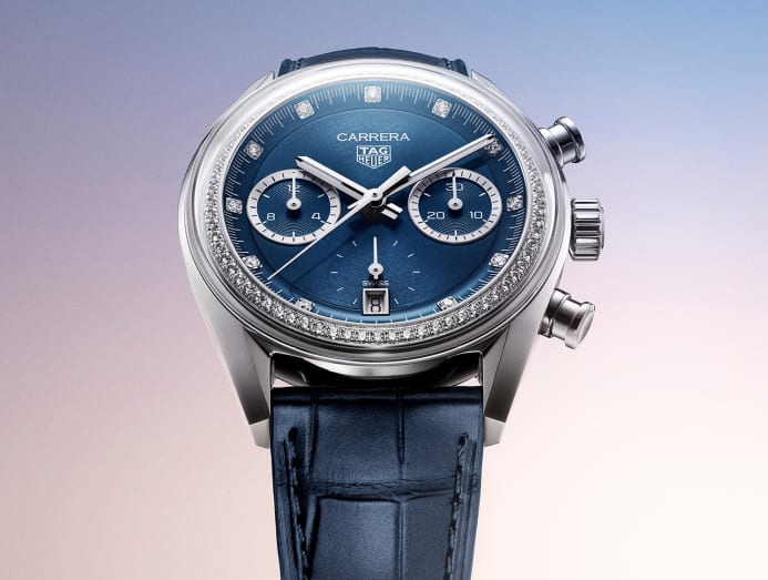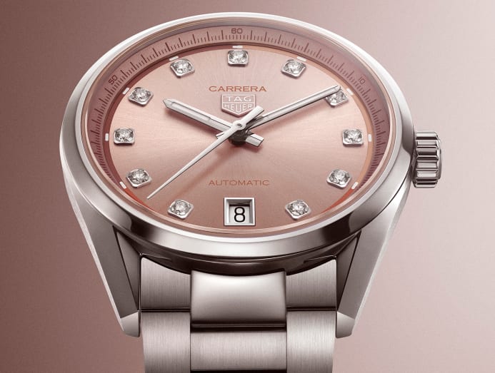 For those drawn to luxury and elegance, the Carrera Chronograph takes the glassbox concept to new heights by integrating a diamond-set flange and chaton diamond indexes under the domed sapphire crystal. The stunning 39mm iterations are available in two variations: One in the Tag Heuer Carrera signature blue and the other in delicate powder pink. Lastly, the Carrera Date range also unveils two new 36mm ladies’ timepieces with dials in soft ultra-feminine hues of powdery pink or lilac.