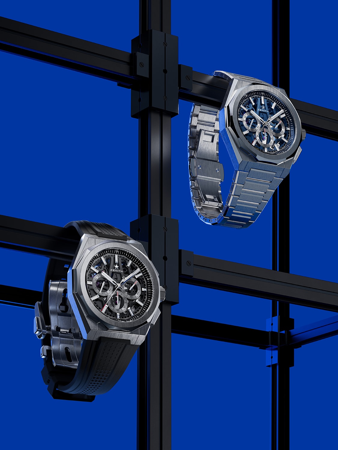 The Swiss manufacture showcases its chronograph expertise with two launches: The Defy Skyline Chronograph Skeleton and Chronomaster Sport Rainbow. A bold evolution of its high-performance integrated sports watch lineup, the Defy Skyline Chronograph Skeleton flaunts an openworked dial in deep blue or dark grey, offering a mesmerising view of the El Primero 3600SK movement. The 12-sided bezel and 42mm stainless steel case lend to the modern, geometric aesthetic, while an interchangeable strap system adds versatility.