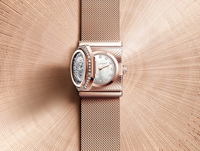 The Maglia Milanese Monete secret watch is Bvlgari’s first use of Milanese mesh – a Renaissance-era jewellery technique developed by Milanese goldsmiths. Made entirely in rose gold, this supple mesh bracelet flows seamlessly from wrist to case and is finished with a matching pin buckle– another first for the Monete collection.