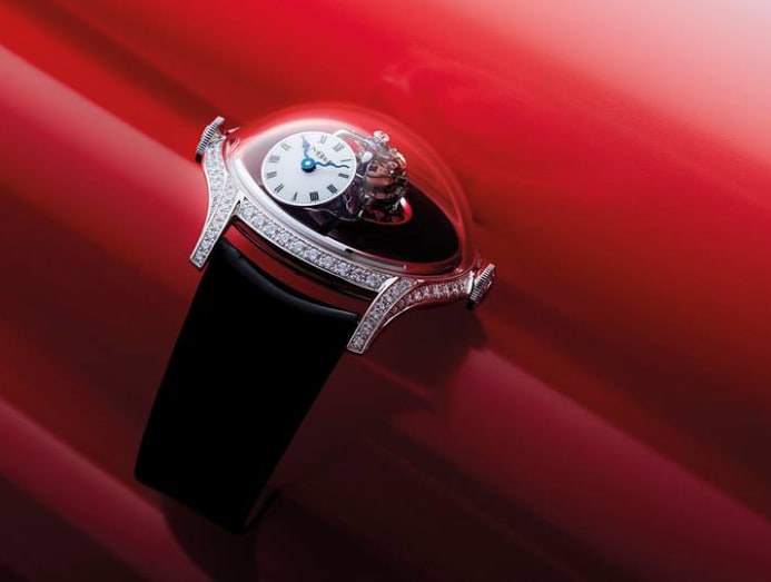 The tilted dial conveys the idea that the time belongs only to whoever puts on the watch, and no one else.(Photo: MB&F)