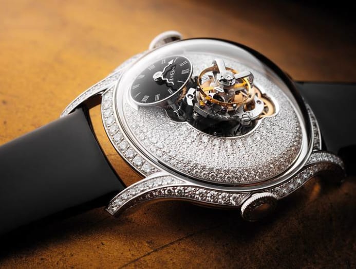 The FlyingT is currently available in three editions in white gold including one that has brilliant-cut diamonds set into the case and two fully paved versions with brilliant-cut or baguette-cut diamonds.