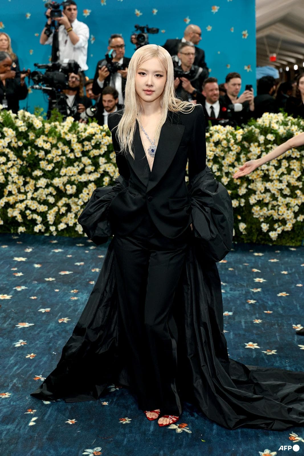 The Blackpink singer suited up in Saint Laurent, complemented by a Tiffany & Co high jewellery necklace featuring a cushion-cut sapphire of over 14 carats.