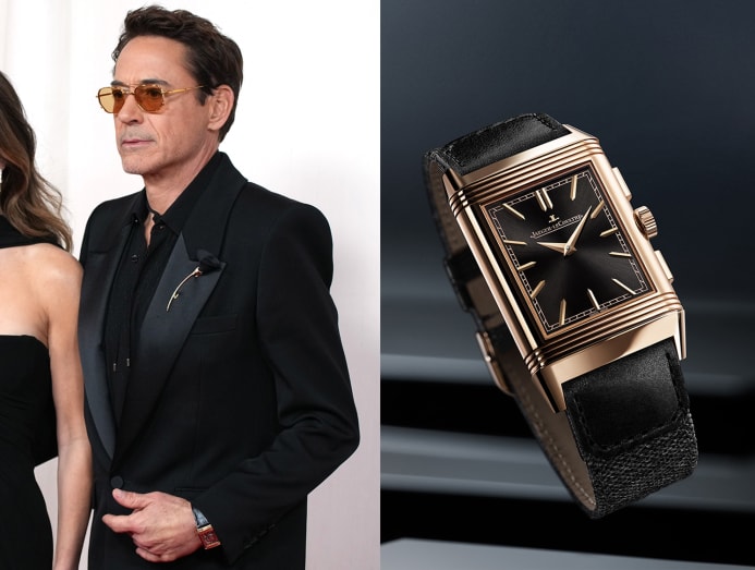 Still one of the most beloved dress watches available today, the Reverso Tribute Chronograph, inspired by the Art Deco era, combines elegance with good looks – just like Downey. The striking pink gold case is a nice compliment to his best supporting actor gold Oscars statue for Oppenheimer.