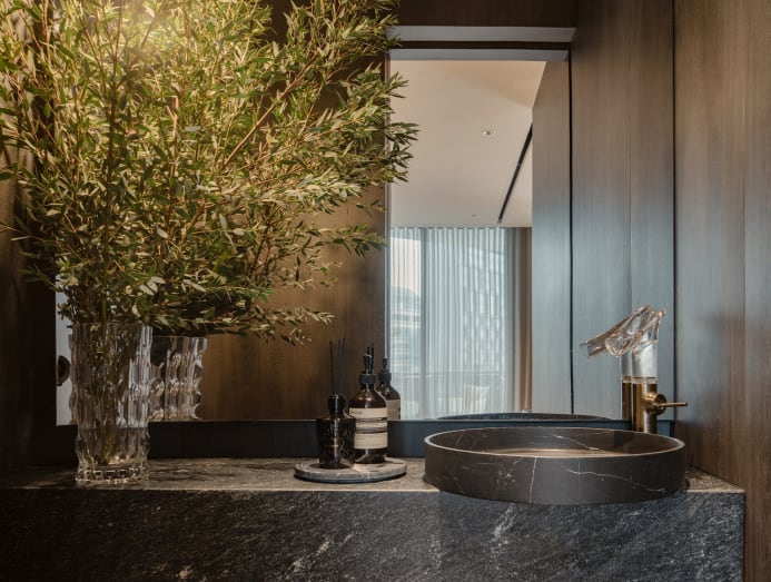Larry Lim, Summerhaus D’zign’s managing partner, has done countless tests comparing bright and darker colour schemes. His firm found that darker palettes almost always come out looking more high-end. Think forest green, charcoal or navy – colours that exude quiet opulence.