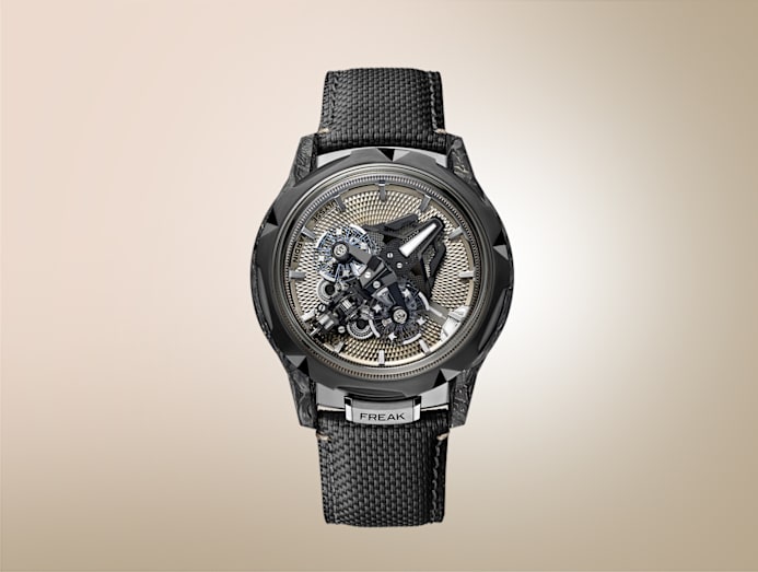 Since then, it’s been exploring a slow and steady evolution in colour and texture to match its sci-fi aesthetic. The Freak S Nomad, launched last year, takes its name from the sand-coloured guilloche hour disc that anchors its design. A titanium case with carbon-fibre side plates completes the look, amplifying its futuristic allure.