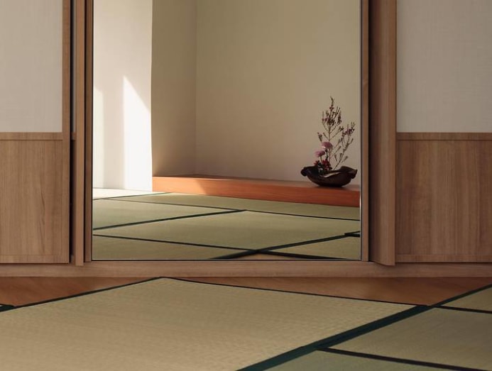“One of my daughters does ballet so sometimes, she turns this into a studio where she can practice,” said the owner. It looks out to a Japanese garden floored with loose pebbles.