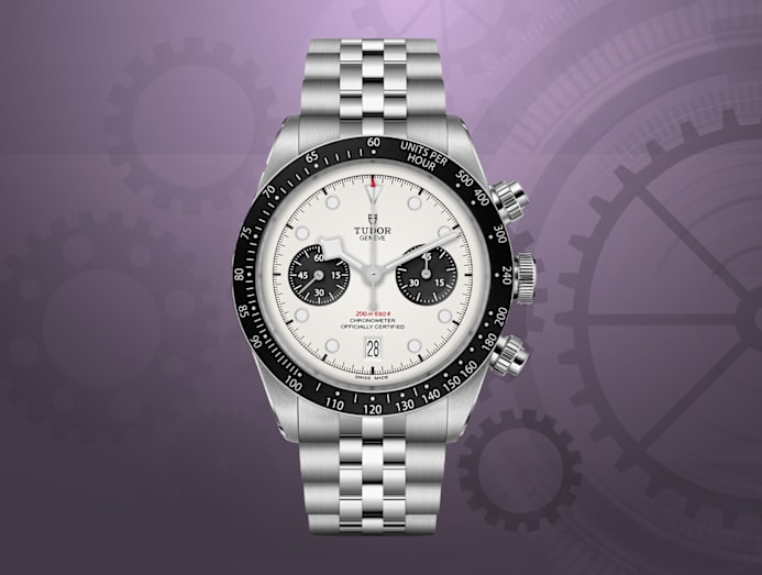 What it is: Tudor’s Black Bay Chronograph takes the brand’s vintage-diver DNA and fuses it with motorsport vibes, resulting in a panda-dial beauty that screams versatility. At 41mm with 200m water resistance, it’s as comfortable timing laps as it is taking a dip. Inside ticks the MT5813, a COSC-certified chronograph calibre co-developed with Breitling, featuring a column wheel and vertical clutch. This is a robust, precise timepiece with all the pedigree you could ask for. New for 2025, a five-link bracelet that gives it a more sophisticated air.