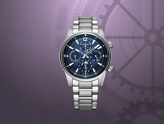 What it is: The Polaris Perpetual Calendar is Jaeger-LeCoultre flexing its dual identities – sporty yet sophisticated. At 42mm, the stainless steel case is water-resistant to 100m – unusual for perpetuals – and houses the automatic calibre 868AA with a 70-hour reserve. The lacquered blue dial layers depth with calendar sub-dials and a moonphase that tracks both hemispheres. Bonus: It automatically adjusts until 2100, so there’s no need to fiddle with it for the rest of your life.