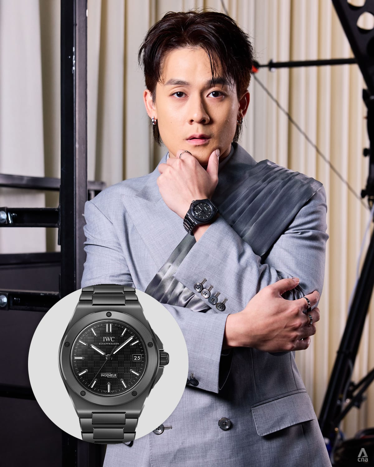 Decked out in a grey ensemble, Richie Koh kept things modern with the IWC Ingenieur Automatic 42 in black.