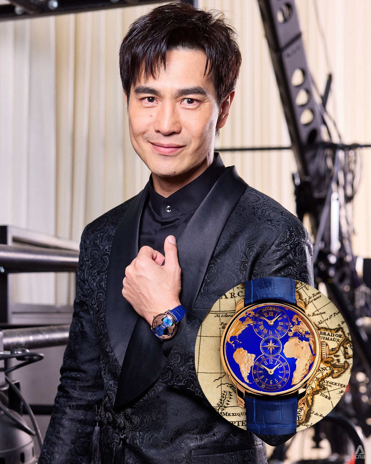Pierre Png looked dapper with the Jacob & Co The World Is Yours Dual Time Zone in a striking shade of blue and rose gold on his wrist.