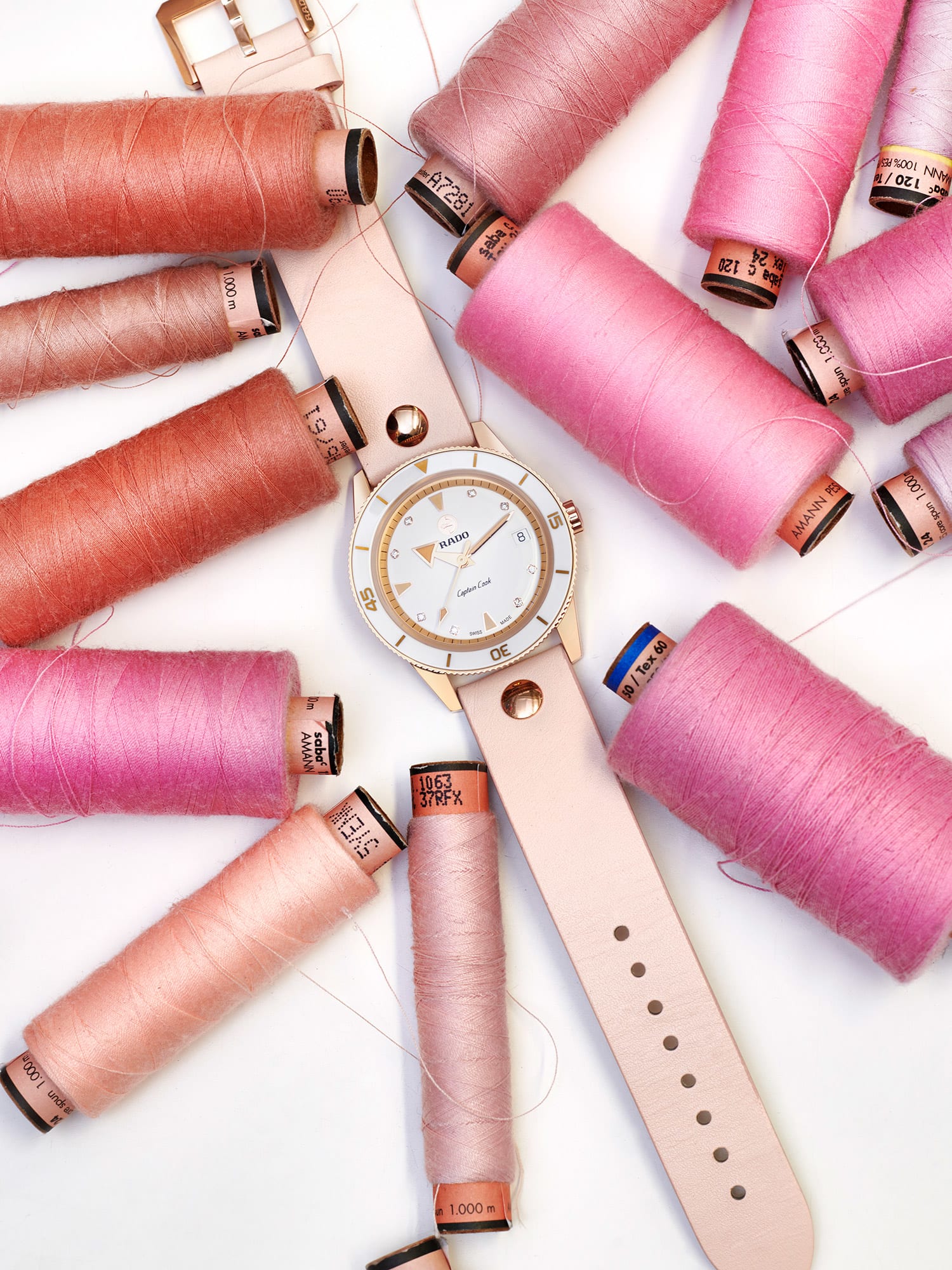 The 37mm stainless steel watch gets a sprinkle of rose gold colouring and, because this is Rado, the bezel features a polished white ceramic insert. Hoermanseder’s trademark buckle and leather strap can be found on the three accompanying straps in pink, black, and a double tour version in pink – all of which can be effortlessly interchanged.