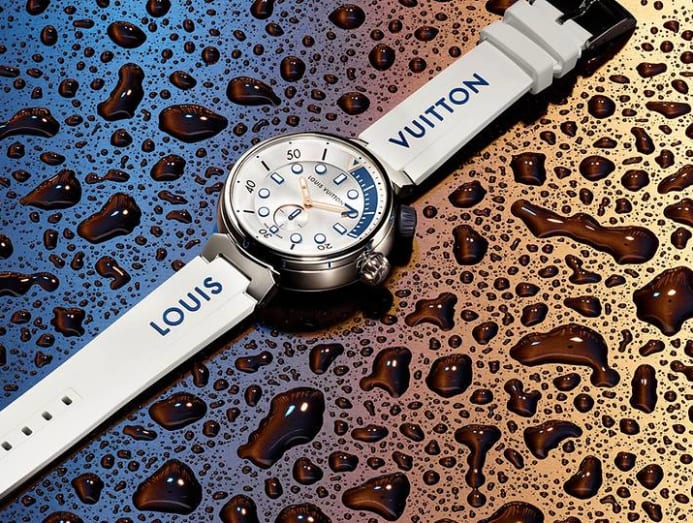 Thanks to strategic use of colour, shapes and font, Louis Vuitton’s Tambour Street Diver in Pacific White is as chic as it is sporty. The straps are, of course, interchangeable, too.