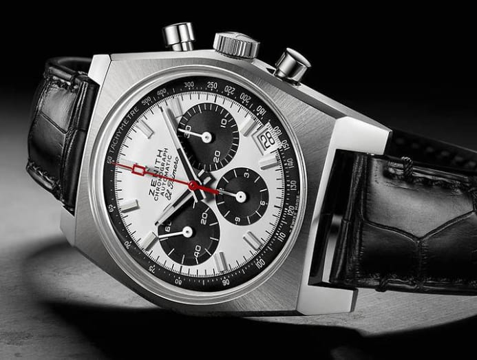 To celebrate this momentous anniversary, Zenith has reissued the very watch that the El Primero movement debuted in – the A384. In order to preserve the emotional appeal that comes with a timepiece of this magnitude, The A384 Revival is as close to the original as possible. Each part of the A384 from 1969 was digitised so it could be accurately reproduced. From the 37mm faceted steel case to the lacquered white and black tachymeter dial, aesthetically it is identical to the original. The only updates to the watch come in the form of a sapphire crystal (instead of acrylic); a clear case back; and a new El Primero 400 chronograph movement.