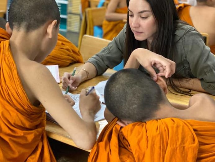 Another thing Wang particularly misses is her weekly English lessons with the young monks in Thailand.