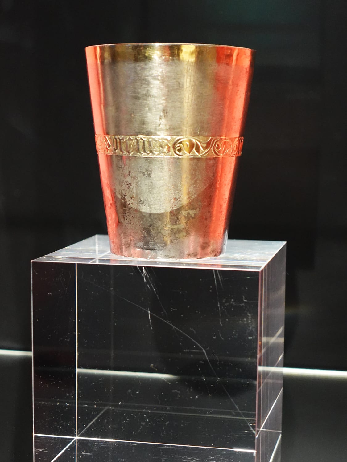 “This silver beaker is the earliest piece of secular silver from Amiens in France, made in 1386, sold to me by Christie's. It's silver with gold inlay, in the gold, it has the lettering which reads 'Prenés en gré' or 'receive with pleasure', an extract from a poem by Christine de Pisan published in 1394. Most of these didn't survive as the silver got beaten down and the silver got repurposed.