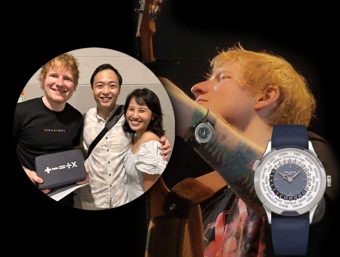 Pairing a dress watch with a rubber strap was precisely what Ed Sheeran did. During the second night of the British singer-songwriter’s second tour stop in Singapore back in February, he performed at the Capitol Theatre wearing a bespoke Patek Philippe World Time 5230G paired with a navy rubber strap.