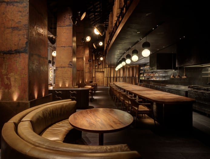 When the restaurant moved to Dempsey Roadchef Pynt asked her to do the interiors. “Dave and I share similar standards and a similar sense of humour. That made the collaboration work. We weren’t even trying to reinvent anything. We just wanted to carry forward that original feeling of Burnt Ends. It always had that intensity of being tight, physical and focused. Every material choice, such as the lava stone, charred timber, 10-million-year-old petrified wood, came from that. These all tie to how Dave cooks with wood, fire and smoke,” Maxwell described.