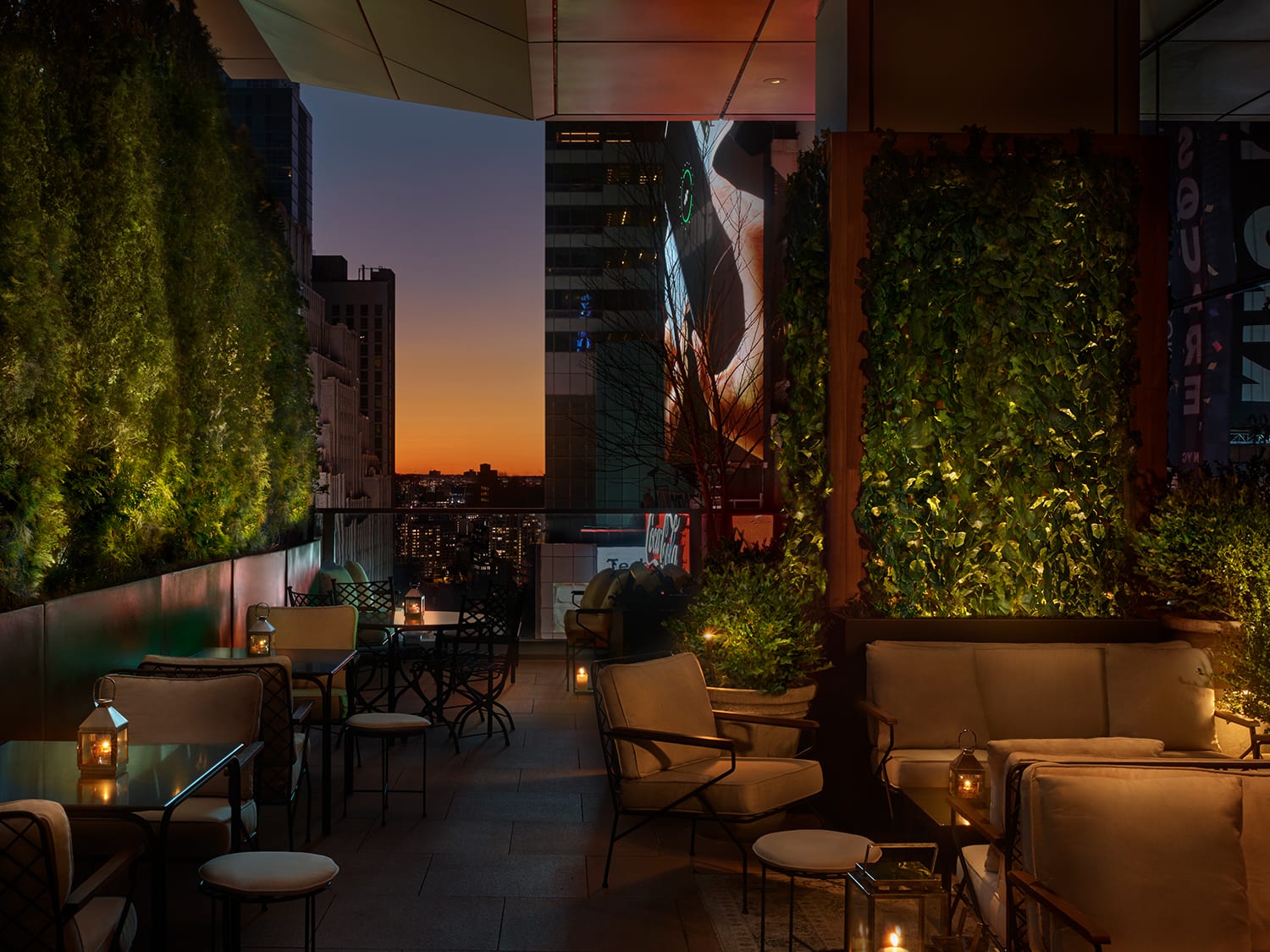 Indeed, the hotel’s main lobby on the 10th floor of the building, stylishly demarcated in black and white spaces, exudes that frisson of energy so palpable on the streets of Manhattan but in an elevated, highly stylised manner. It helps that there are almost always seriously cool people hanging around, ranging from chic Manhattanites at happy hour to celebrities like actress Lana Condor who was a recent guest at the hotel.